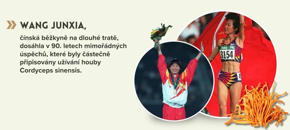 Cordyceps získal světovou pozornost v roce 1993, když čínské ženské běžkyně dosáhly rekordy na tratích 1500 m, 3000 m a 10 000 m. Jejich trenér připisoval jejich úspěch stravě obsahující Cordyceps. Odvtedy si získal viac pozornosti aj v akademickej obci a začal sa testovať vo vedeckých štúdiách.