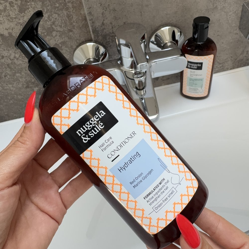 Pro nejlepší výsledky je důležité používat kondicionér po umytí vlasů hydratačním šamponem Nuggela & Sulé. Po umytí vlhké vlasy jemně osušte ručníkem, abyste z nich odstranili přebytečnou vodu. Naneste malé množství kondicionéru – 1–2 čajové lžičky, v závislosti na délce vlasů. Aplikujte na vlasy a pokožku hlavy, začínajíc od délky po konečky, a jemně masírujte. Nezapomeňte na kořínky – tento kondicionér je lehký a nezatěžuje vlasy, takže ho můžete nanést i na pokožku hlavy. Nechte působit 2–3 minuty, aby se aktivní složky mohly dostat hluboko do vlasového vlákna. Po uplynutí této doby důkladně opláchněte vlasy dostatečným množstvím vody. Pro dosažení nejlepších výsledků doporučujeme kondicionér používat v kombinaci s hydratačním šamponem nebo s jinými šampony z této řady.