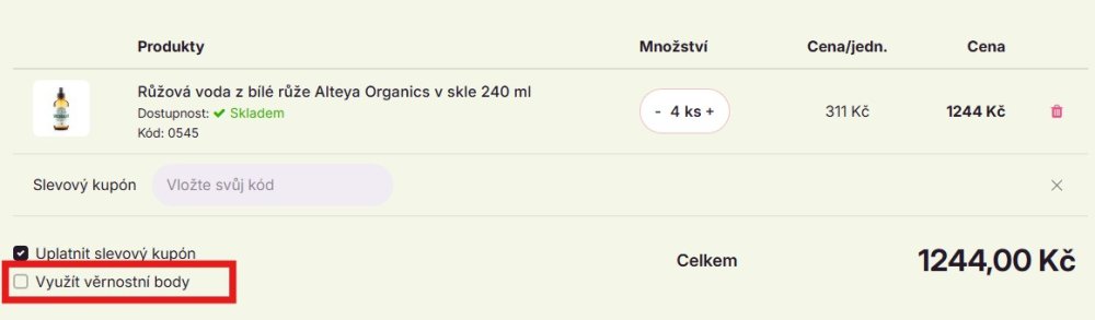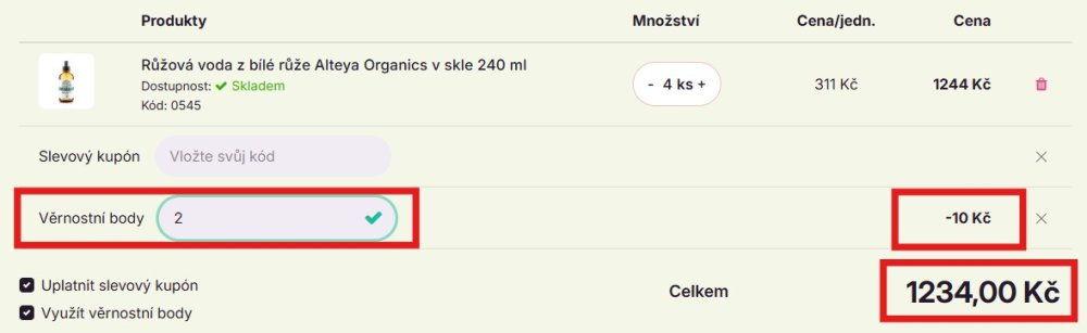 Krok 1 - zaškrtněte políčko "Využít věrnostní body"